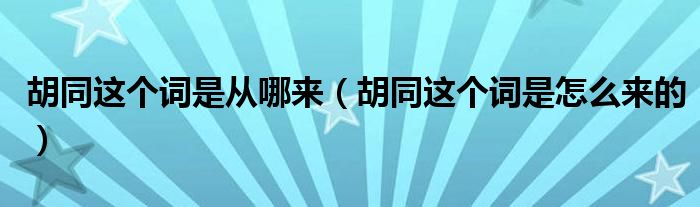 胡同这个词是从哪来(胡同这个词是怎么来的)