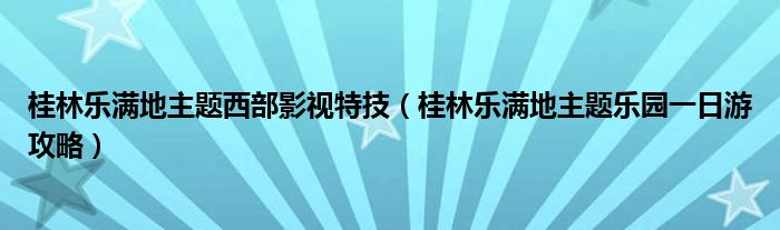 桂林乐满地主题西部影视特技(桂林乐满地主题乐园一日游攻略)
