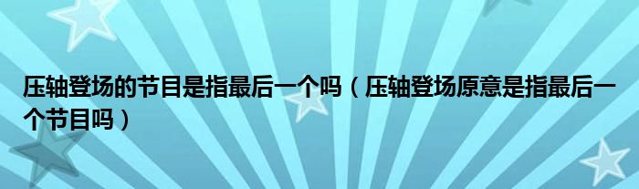 压轴登场的节目是指最后一个吗(压轴登场原意是指最后一个节目吗)