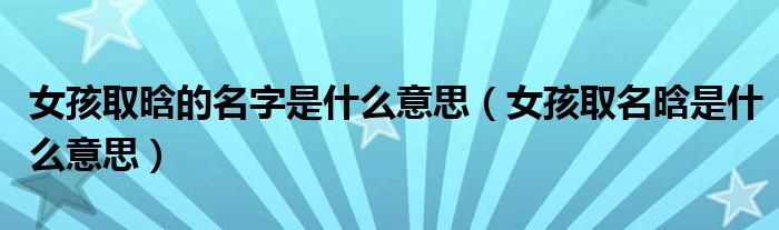 女孩取晗的名字是什么意思(女孩取名晗是什么意思)