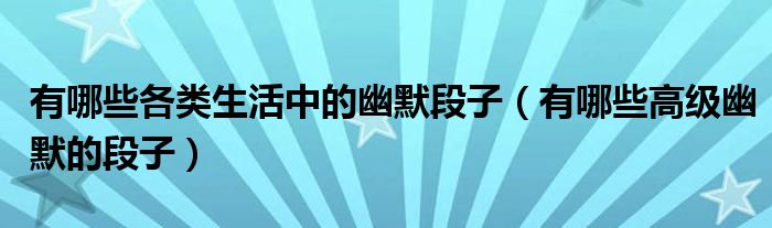 有哪些各类生活中的幽默段子(有哪些高级幽默的段子)
