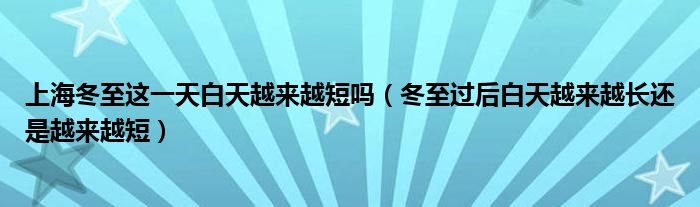 大家好,小知来为大家解答以上问题。上海冬至这一天白天越来越短吗,冬至过后白天越来越长还是越来越短这个很多人还不知道,现在让我们一起来看看吧!