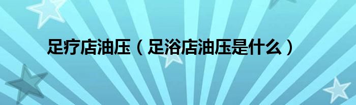 足疗店油压(足浴店油压是什么)