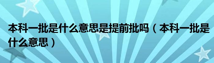 本科一批是什么意思是提前批吗(本科一批是什么意思)