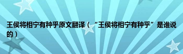 王侯将相宁有种乎原文翻译(“王侯将相宁有种乎”是谁说的)