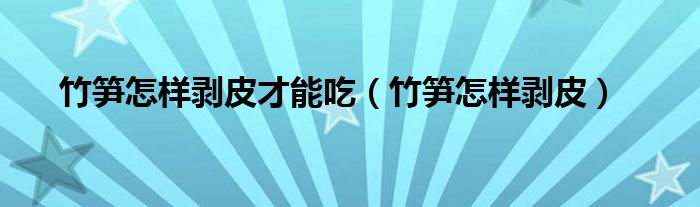竹笋怎样剥皮才能吃(竹笋怎样剥皮)