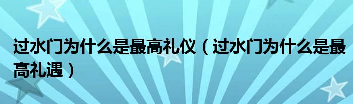 2、 过水门为什么是最高礼遇?
