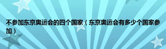 大家好,小知来为大家解答以上问题。不参加东京奥运会的四个国家,东京奥运会有多少个国家参加这个很多人还不知道,现在让我们一起来看看吧!