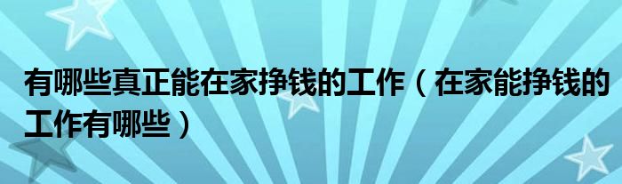有哪些真正能在家挣钱的工作(在家能挣钱的工作有哪些)