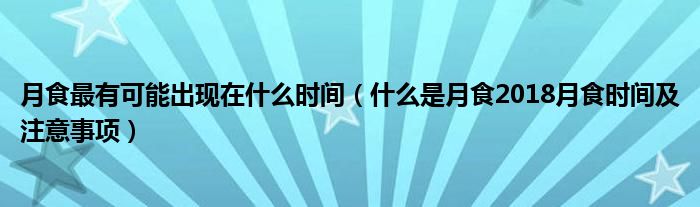 大家好,小知来为大家解答以上问题。月食最有可能出现在什么时间,什么是月食2018月食时间及注意事项这个很多人还不知道,现在让我们一起来看看吧!