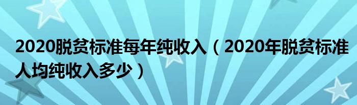 2020脱贫标准每年纯收入(2020年脱贫标准人均纯收入多少)