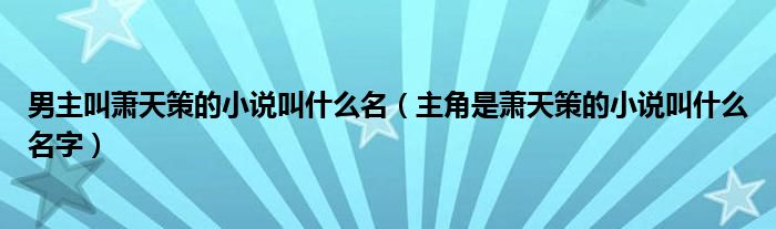 男主叫萧天策的小说叫什么名(主角是萧天策的小说叫什么名字)