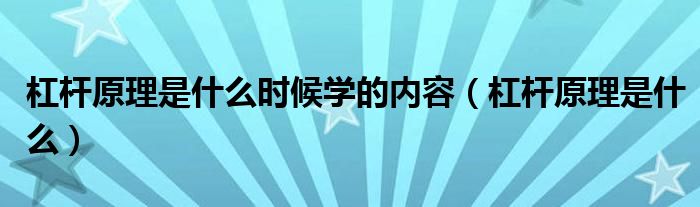 杠杆原理是什么时候学的内容(杠杆原理是什么)