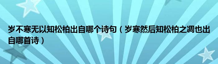 岁不寒无以知松柏出自哪个诗句(岁寒然后知松柏之凋也出自哪首诗)