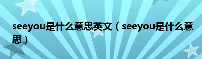 大家好,小知来为大家解答以上问题。seeyou是什么意思英文,seeyou是什么意思这个很多人还不知道,现在让我们一起来看看吧!
