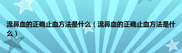 流鼻血的正确止血方法是什么(流鼻血的正确止血方法是什么)