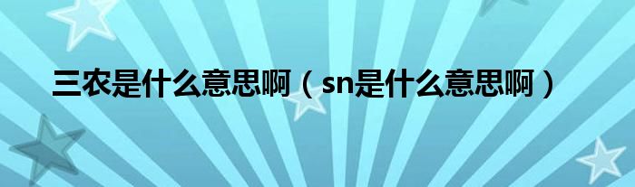 大家好,小知来为大家解答以上问题。三农是什么意思啊,sn是什么意思啊这个很多人还不知道,现在让我们一起来看看吧!