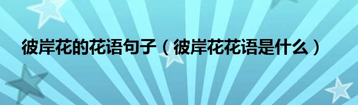 大家好,小知来为大家解答以上问题。彼岸花的花语句子,彼岸花花语是什么这个很多人还不知道,现在让我们一起来看看吧!