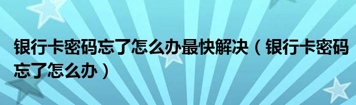 银行卡密码忘了怎么办最快解决(银行卡密码忘了怎么办)