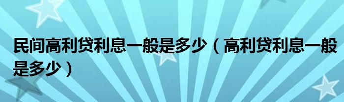 民间高利贷利息一般是多少(高利贷利息一般是多少)