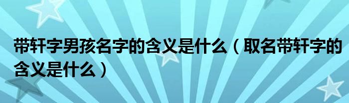 带轩字男孩名字的含义是什么(取名带轩字的含义是什么)