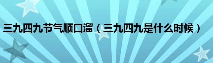三九四九节气顺口溜(三九四九是什么时候)