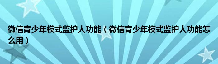 微信青少年模式监护人功能(微信青少年模式监护人功能怎么用)
