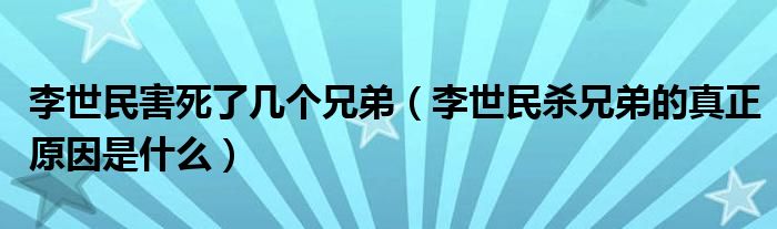 大家好,小知来为大家解答以上问题。李世民害死了几个兄弟,李世民杀兄弟的真正原因是什么这个很多人还不知道,现在让我们一起来看看吧!