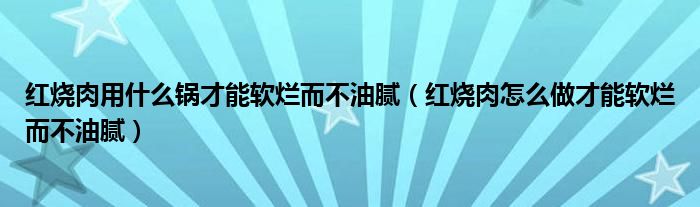 红烧肉用什么锅才能软烂而不油腻(红烧肉怎么做才能软烂而不油腻)