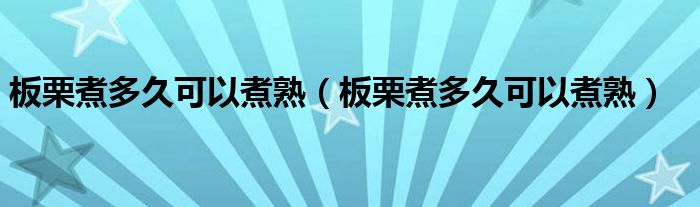 板栗煮多久可以煮熟(板栗煮多久可以煮熟)