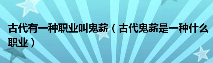 古代有一种职业叫鬼薪(古代鬼薪是一种什么职业)