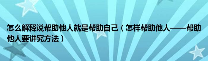 怎么解释说帮助他人就是帮助自己(怎样帮助他人——帮助他人要讲究方法)
