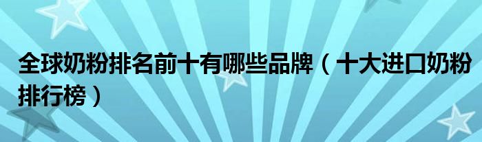 大家好,小知来为大家解答以上问题。全球奶粉排名前十有哪些品牌,十大进口奶粉排行榜这个很多人还不知道,现在让我们一起来看看吧!