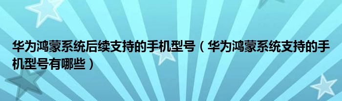华为鸿蒙系统后续支持的手机型号(华为鸿蒙系统支持的手机型号有哪些)