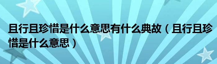 且行且珍惜是什么意思有什么典故(且行且珍惜是什么意思)
