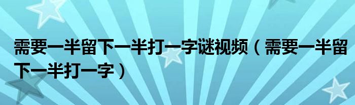 需要一半留下一半打一字谜视频(需要一半留下一半打一字)