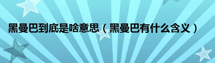 黑曼巴到底是啥意思(黑曼巴有什么含义)