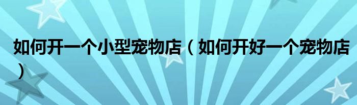 大家好,小知来为大家解答以上问题。如何开一个小型宠物店,如何开好一个宠物店这个很多人还不知道,现在让我们一起来看看吧!