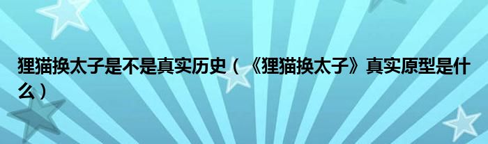 大家好,小知来为大家解答以上问题。狸猫换太子是不是真实历史,《狸猫换太子》真实原型是什么这个很多人还不知道,现在让我们一起来看看吧!