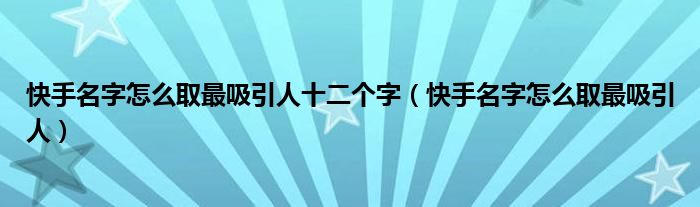 快手名字怎么取最吸引人十二个字(快手名字怎么取最吸引人)