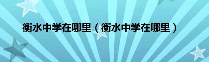 大家好,小知来为大家解答以上问题。衡水中学在哪里,衡水中学在哪里这个很多人还不知道,现在让我们一起来看看吧!
