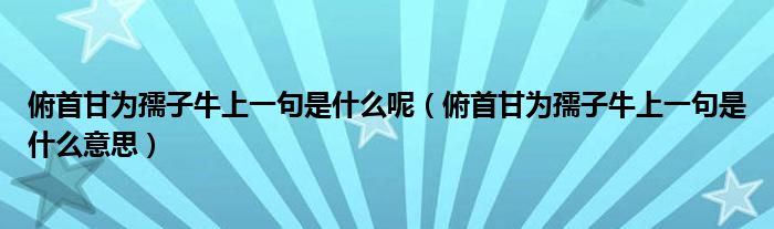 俯首甘为孺子牛上一句是什么呢(俯首甘为孺子牛上一句是什么意思)