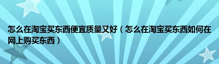 怎么在淘宝买东西便宜质量又好(怎么在淘宝买东西如何在网上购买东西)