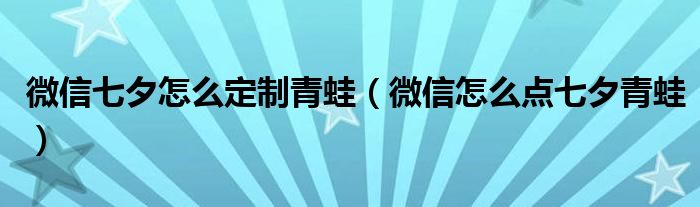 微信七夕怎么定制青蛙(微信怎么点七夕青蛙)
