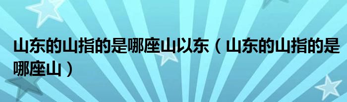 山东的山指的是哪座山以东(山东的山指的是哪座山)
