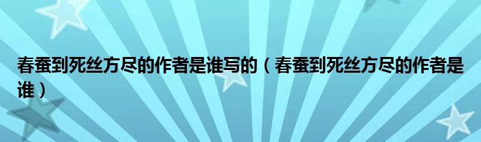 春蚕到死丝方尽的作者是谁写的(春蚕到死丝方尽的作者是谁)