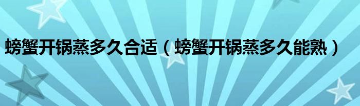 大家好,小知来为大家解答以上问题。螃蟹开锅蒸多久合适,螃蟹开锅蒸多久能熟这个很多人还不知道,现在让我们一起来看看吧!