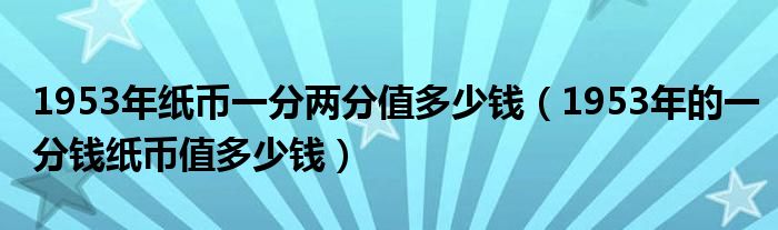 大家好,小知来为大家解答以上问题。1953年纸币一分两分值多少钱,1953年的一分钱纸币值多少钱这个很多人还不知道,现在让我们一起来看看吧!