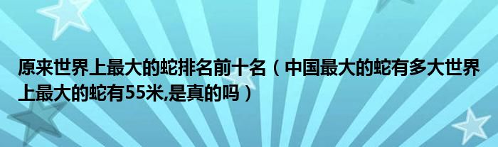 原来世界上最大的蛇排名前十名(中国最大的蛇有多大世界上最大的蛇有55米,是真的吗)