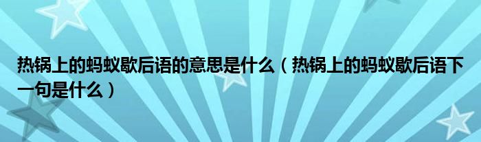 热锅上的蚂蚁歇后语的意思是什么(热锅上的蚂蚁歇后语下一句是什么)